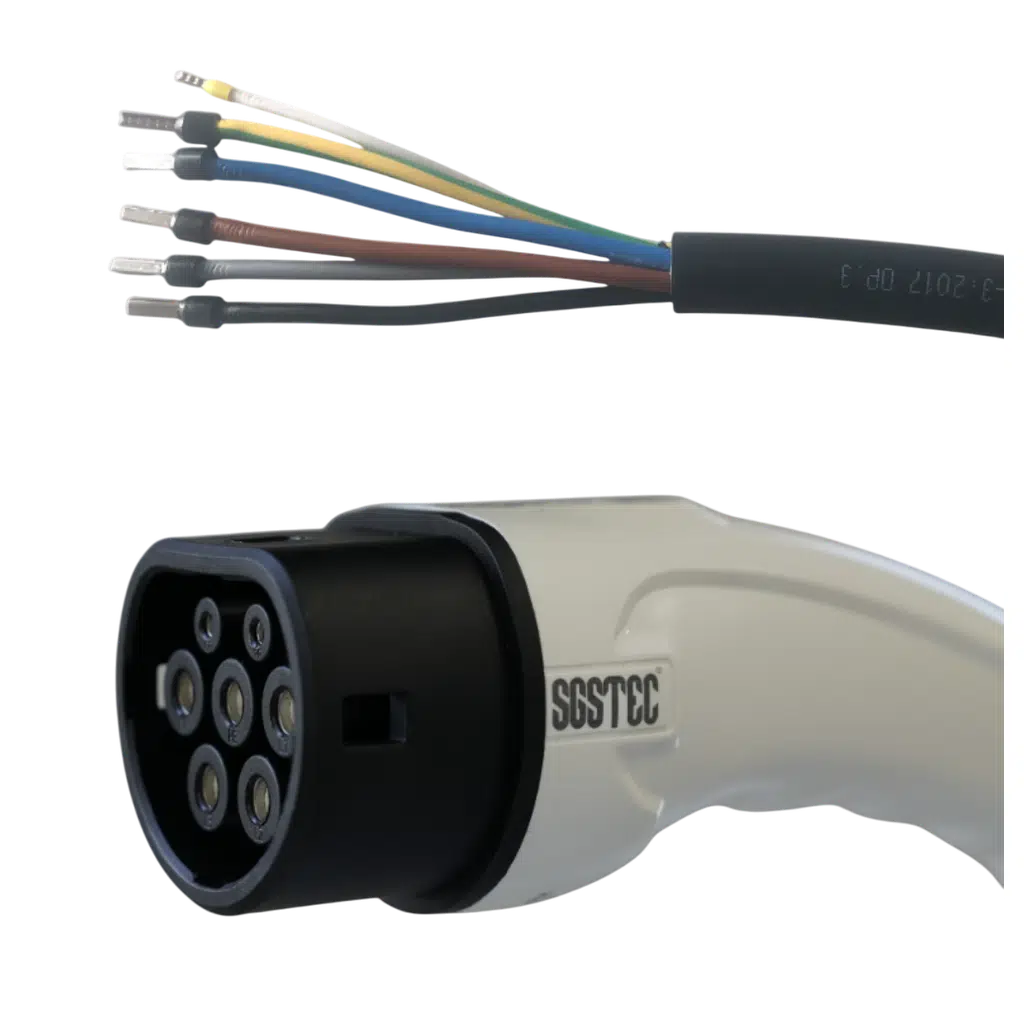 SGSTEC Marka 10 Metre Hazır Kablo, Bir Tarafı Açık, 3 Fazlı Maksimum 22kW 32A Elektrikli araç şarj cihazlarına sabit olarak takılarak kullanılır.