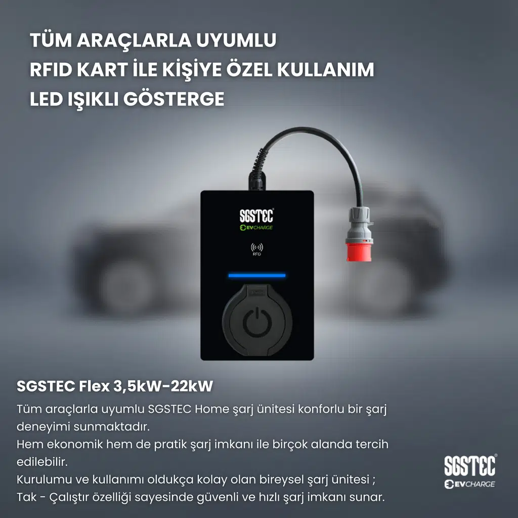 | Etiketler | SGSTEC Flex 22kW Soketli Elektrikli Araç Şarj Cihazı |
