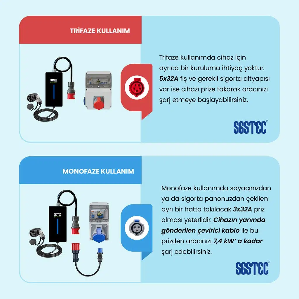 | Etiketler | SGSTEC Home 22kW 10Metre Kablolu Elektrikli Araç Şarj Cihazı |