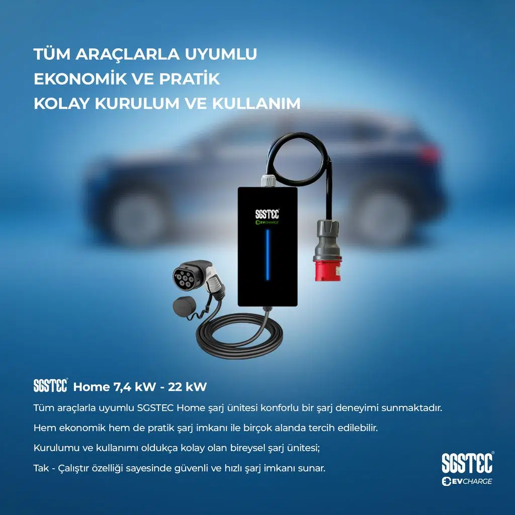 | Etiketler | SGSTEC Home 22kW 7Metre Kablolu Elektrikli Araç Şarj Cihazı |