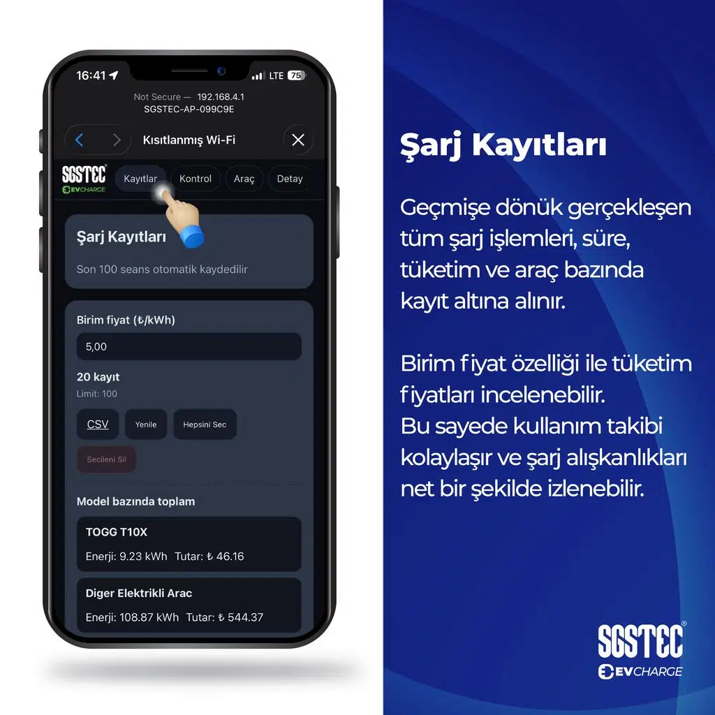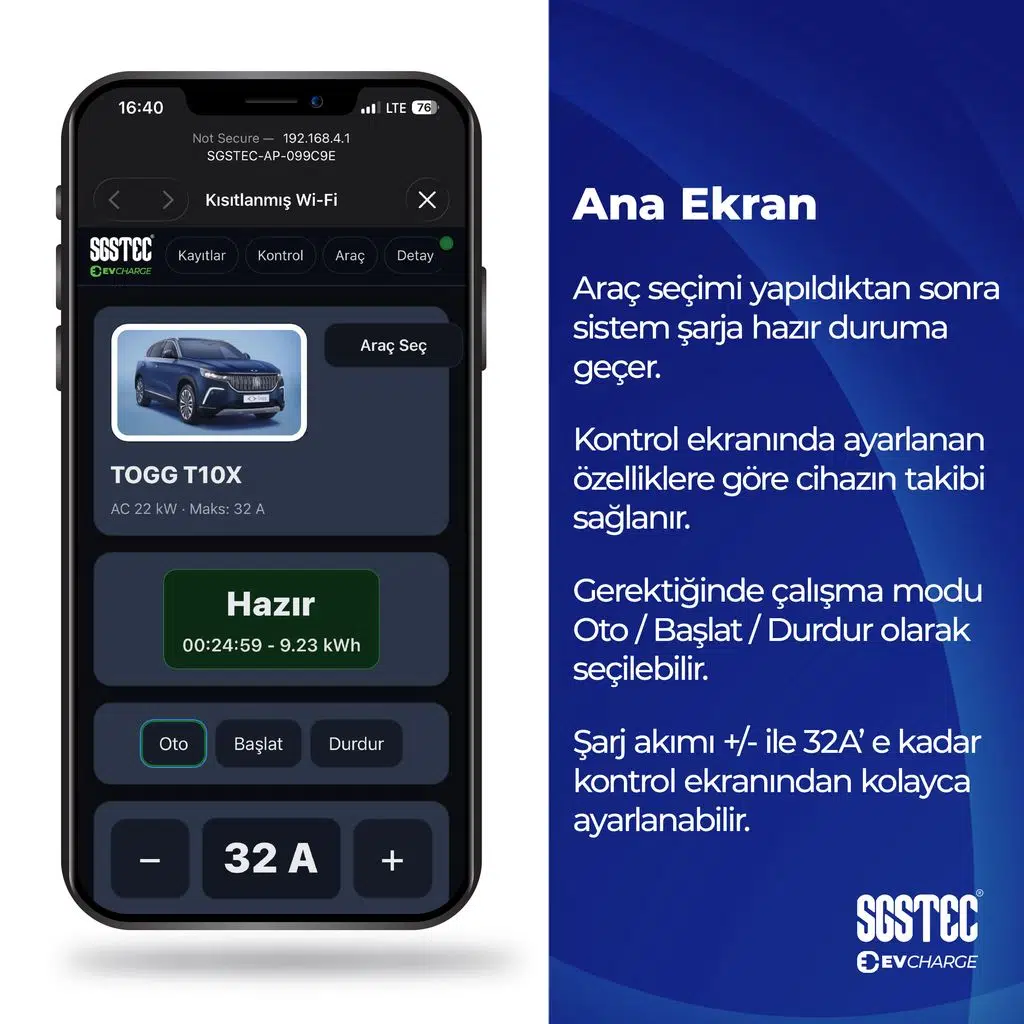 SGSTEC şarj sistemleri, elektrikli araç kullanıcılarının güvenli, yüksek performanslı ve uzun ömürlü şarj ihtiyacına yönelik geliştirilmiştir. Yerli üretim gücü ve teknik servis desteği ile satış sonrası güven sunar.