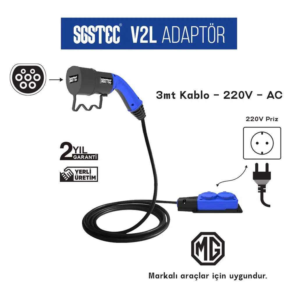 Bu adaptör, V2L (Vehicle-to-Load) MG araçlarınız ile uyumludur.
