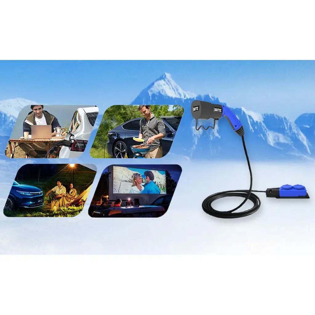 Elektrikli araçlarınız için geliştirilmiş olan 3 metre kablolu 2'li V2L uzatma priz adaptörü, araçtan enerji çekerek günlük ihtiyaçlarınıza pratik bir çözüm sunar.