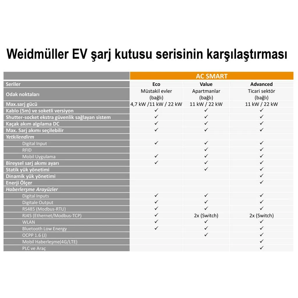 Elektrikli araç sahipleri için tasarlanan WEIDMULLER AC Smart 7,4kWŞarj İstasyonu, hızlı ve güvenilir bir şarj deneyimi sunar. İşte bu şarj kutusunun dikkat çeken özellikleri
